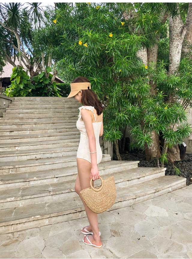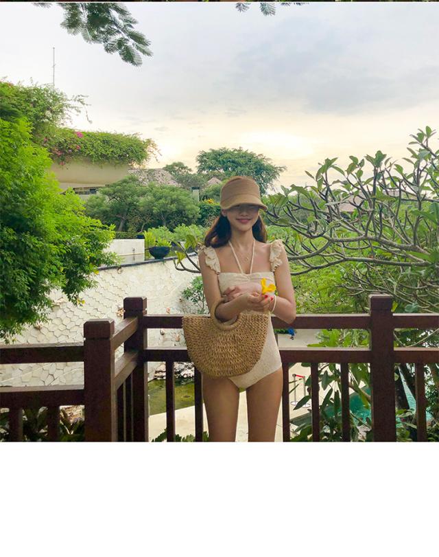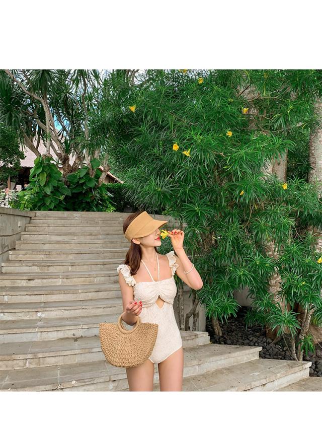 アイボリーカラーの2wayワンピース水着。