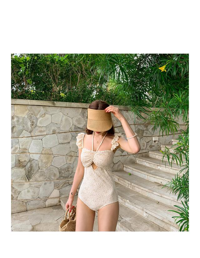 水着 スイムウェア レディース ワンピース水着 体型カバー水着 ホルターネック 二の腕カバー 胸元 谷間 谷間魅せ 盛れる 2way カットアウト レース フリル かわいい 大人可愛い きれいめ セクシー sexy 華やか エレガント 上品 大人 大人っぽい レトロ おしゃれ お洒落 存在感 女っぽ S M L XL アイボリー 無地 10代 20代 30代 40代 ママ ビーチ 海 夏 プール リゾート 旅行 美脚 脚長 着痩せ スタイルアップ 美スタイル 韓国 オルチャン 高見え 格上げ モテ