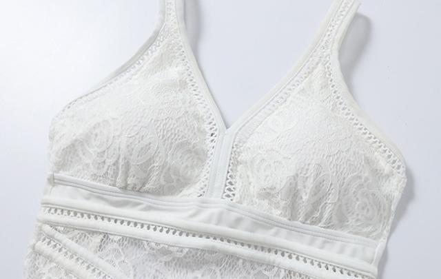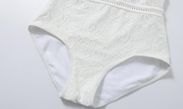 水着は総レースで、エレガントで高級感あふれるデザイン。