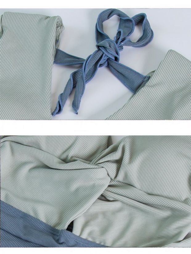 フロントのクロスデザインやハイウエスト、長袖など