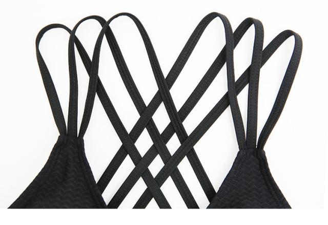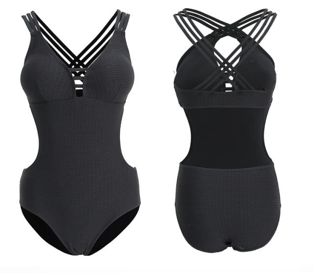 2色カラバリ、バッククロスビキニ風モノキニワンピース水着。