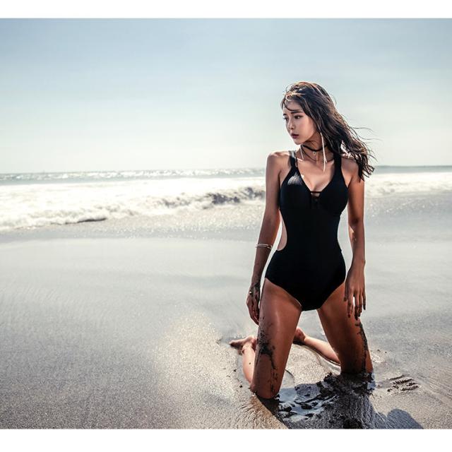 大人シンプルなモノキニデザインがスタイルアップ効果も♪