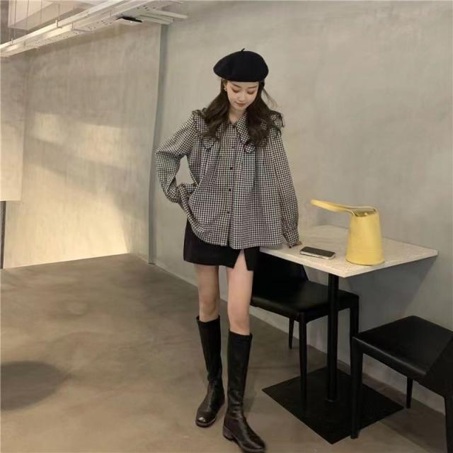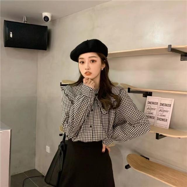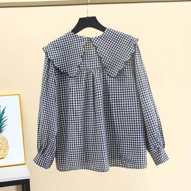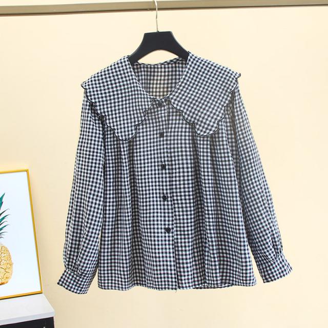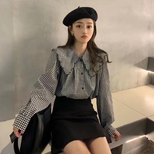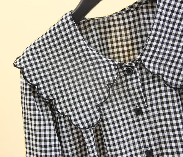 トップス ブラウス フリル ビッグカラー スカラップ 長袖 レディース ガーリー フェミニン お洒落 オシャレ フェアリー かわいい 大人可愛い 10代 20代 30代 40代 シンプル カジュアル 春 秋 夏 冬 オールシーズン こなれ感 休日 お出かけ 買い物 女子会 デート モテ 韓国 トレンド 流行 前開き 白 黒 ホワイト ブラック チェック ギンガムチェック 映え SNS 写真 お揃い 双子 コーデ 着回し 量産 ロリータ 姫系 学生 制服 甘め 華奢 とろみ 薄手 S М L XL 2XL