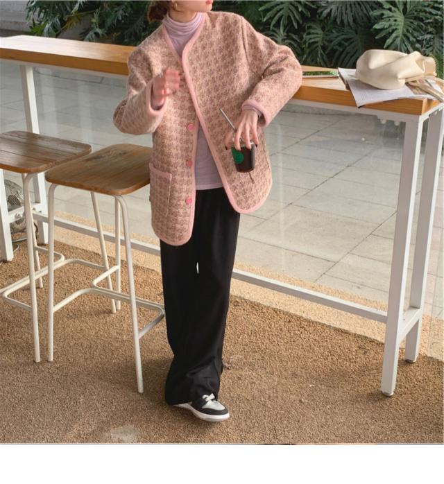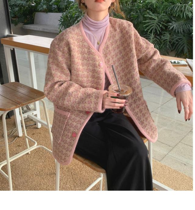 アウター ツイード ジャケット 2色 レディース 長袖 お洒落 オシャレ かわいい 大人可愛い きれいめ 上品 エレガント 防寒 暖かい あったか 秋 冬 春 ノーカラー 前開き ボタン シック モダン 20代 30代 40代 50代 大きいサイズ プラスサイズ М L XL 2XL 3XL 4XL シンプル カジュアル ゆったり 大きめ 体型カバー 着痩せ Iライン ストレート 通勤 休日 お出かけ ショッピング 女子会 デート モテ 高級感 こなれ感 韓国 トレンド 流行 ブラック 黒 ピンク