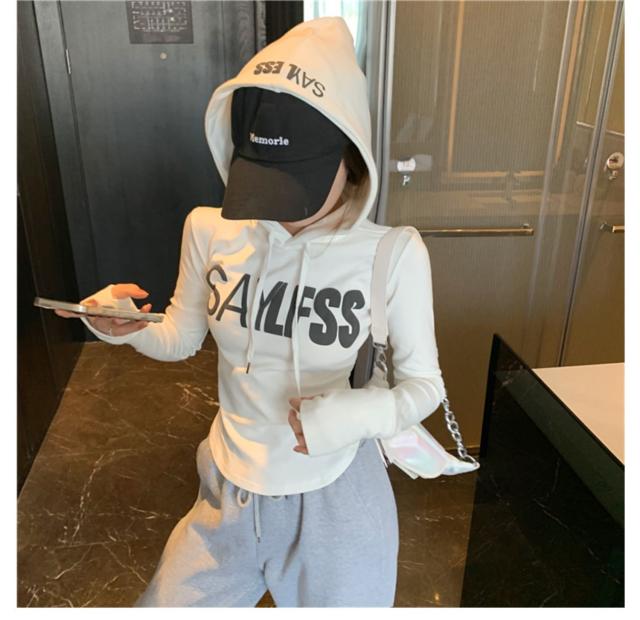 トップス パーカー カットソー フード付き 2色 長袖 レディース シャツ タイト スリム 細身 シンプル カジュアル ラフ 無地 ホワイト 白 黒 ブラック 蛍光 ルーズ ゆる リラックス 部屋着 ルームウェア 萌え袖 休日 お出かけ 公園 体型カバー 着痩せ 細見え 10代 20代 30代