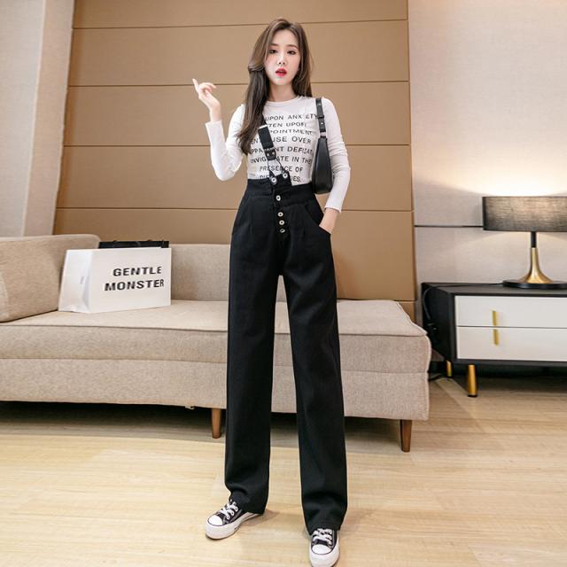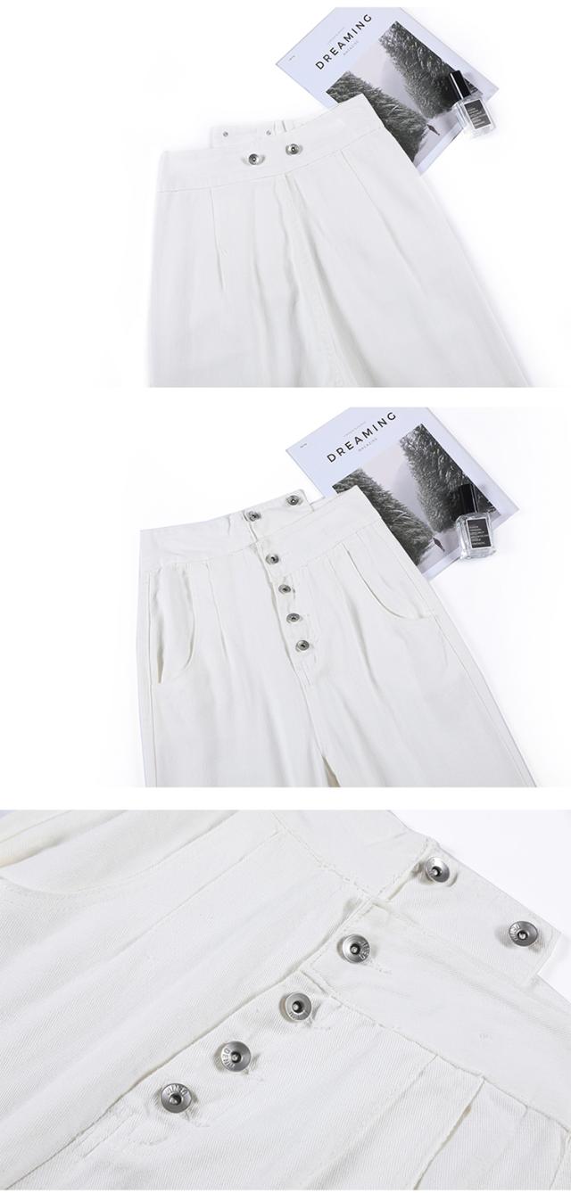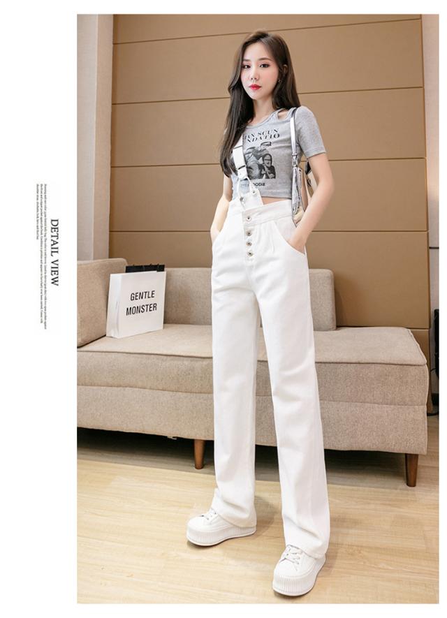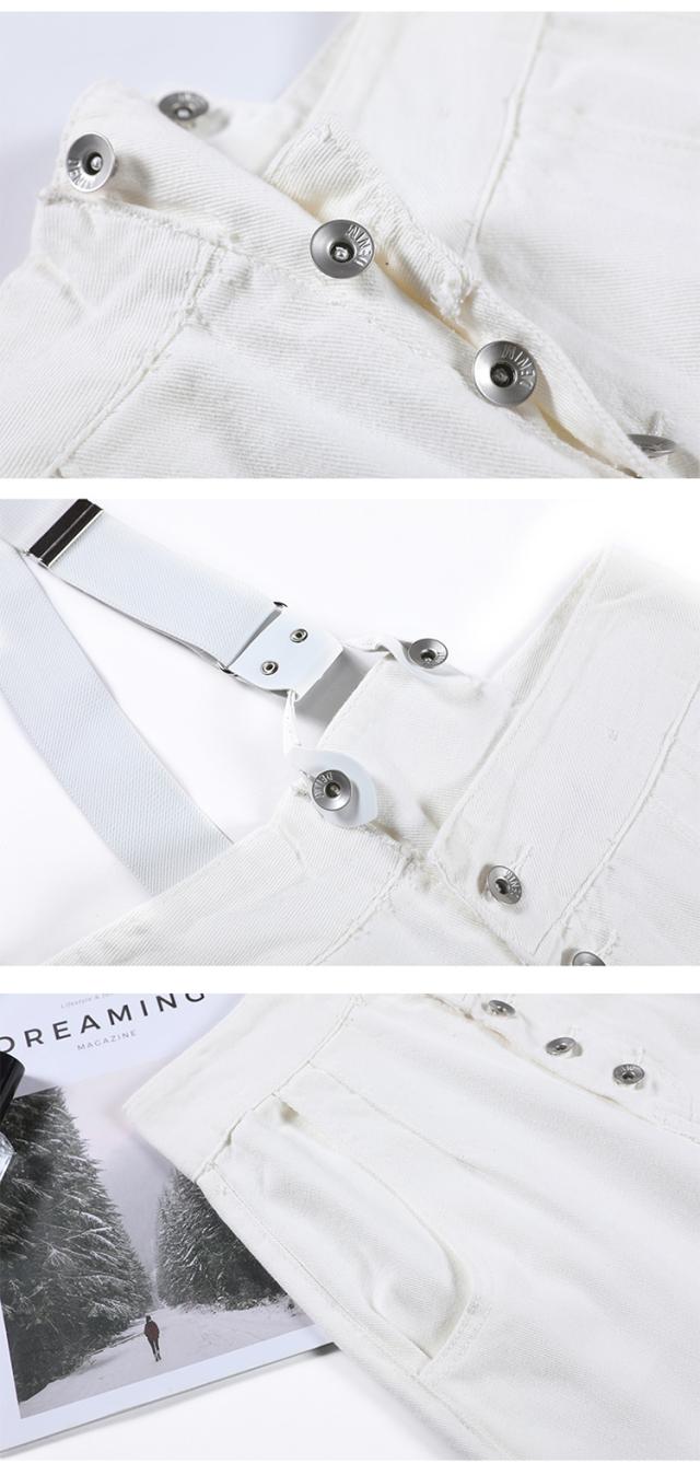 2色カラバリ、ワンショルダーサロペットデニムパンツ。