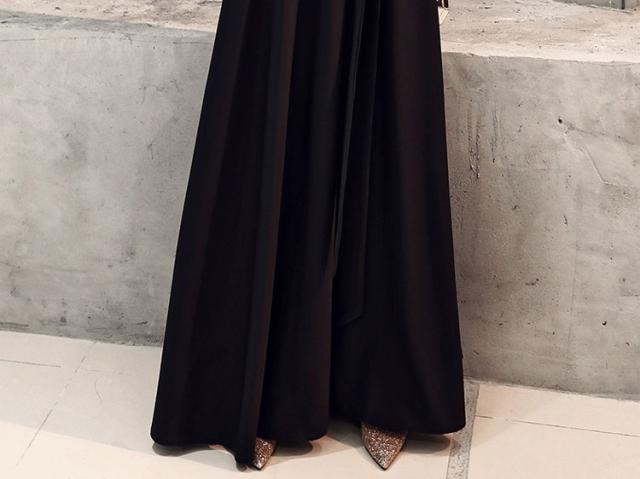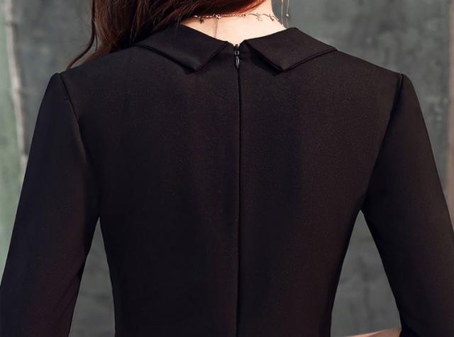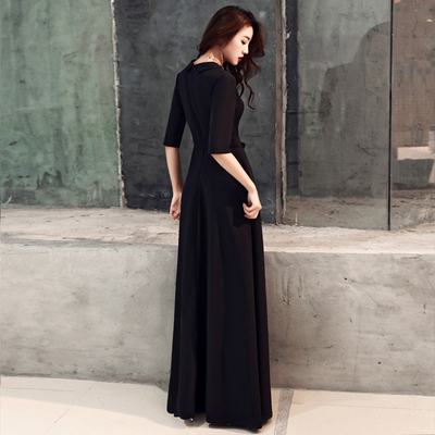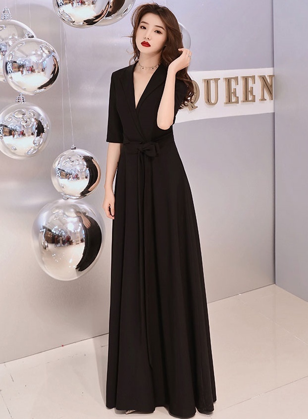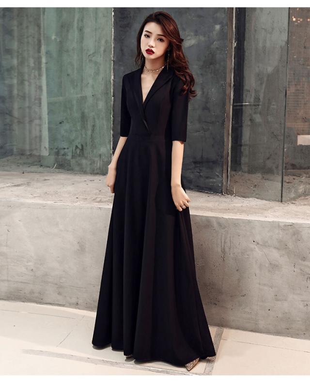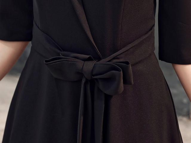 ワンピース ドレス リボン 襟付き レディース ロング丈 マキシ丈 袖あり 七分袖 スリム タイト 細身 Aライン Vネック カジュアル セクシー 色っぽ かわいい 大人可愛い きれいめ シンプル おしゃれ お洒落 エレガント エキゾチック 大人可愛い こなれ感 個性的 個性派 パーティー イベント 夜 キャバクラ キャバ嬢 高級感 デコルテ 鎖骨 肌見せ 無地 黒 ブラック 美脚 脚長 スタイルアップ 主役 存在感 S М L XL 2XL 3XL プラスサイズ