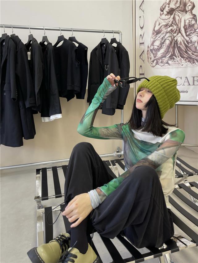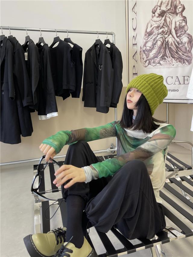 トップス シャツ カットソー ハイネック 長袖 レディース 薄手 透け感 シアー タイト ゆったり 大きめ シンプル カジュアル ラフ 総柄 緑 グリーン ホワイト 白 迷彩 くすみカラー 10代 20代 30代 40代 春 秋 夏 お洒落 オシャレ かわいい 大人可愛い こなれ感 伸縮性 着心地 柔らか 着回し 重ね着 女子会 新作 2021 華奢 スタイルアップ メンズライク クール かっこいい サブカル