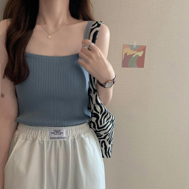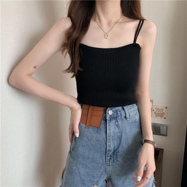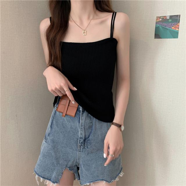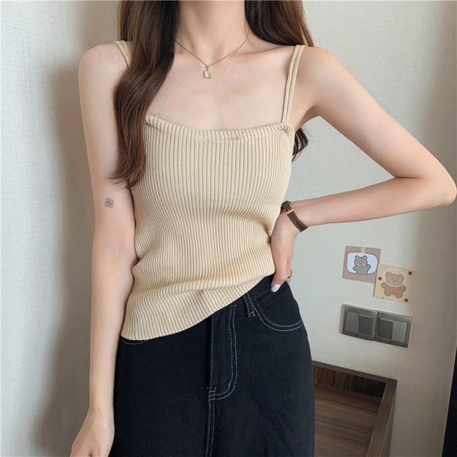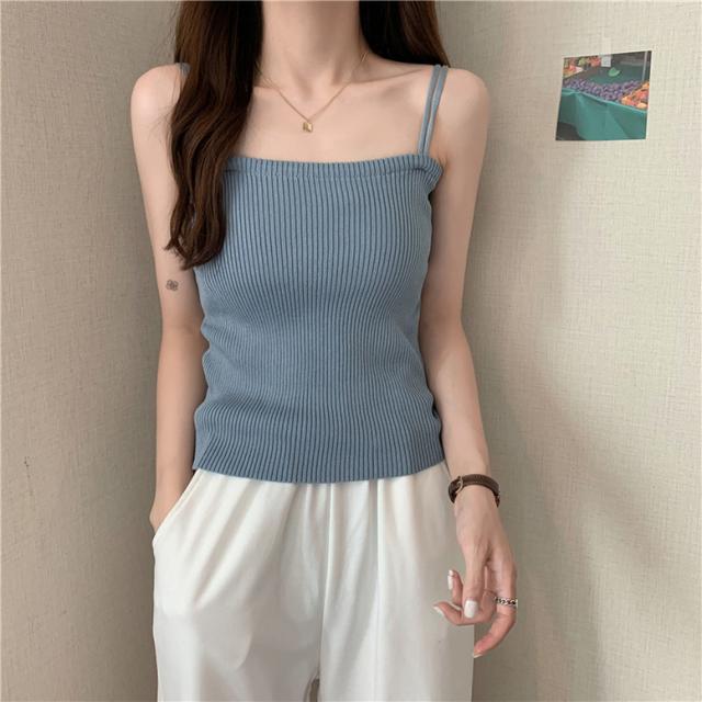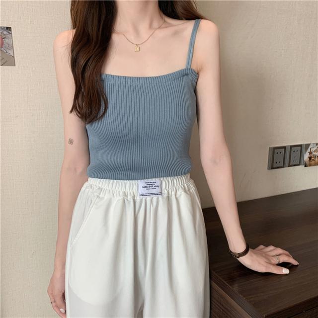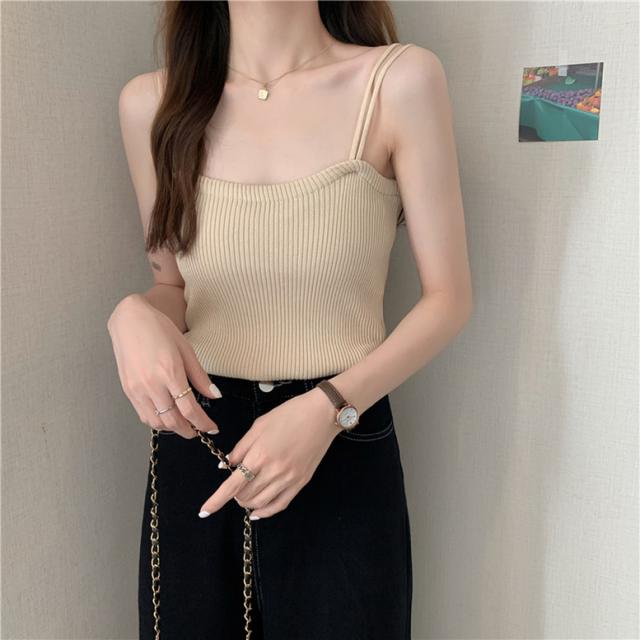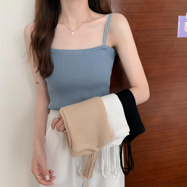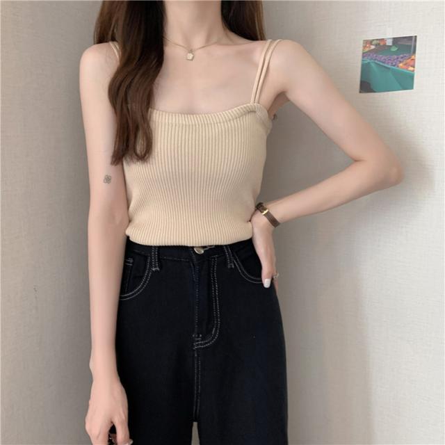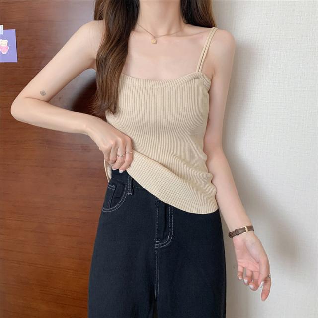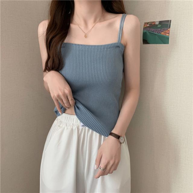 柔らかなリブニットの肌触りが着心地よいキャミソール