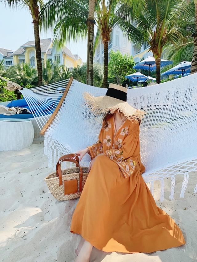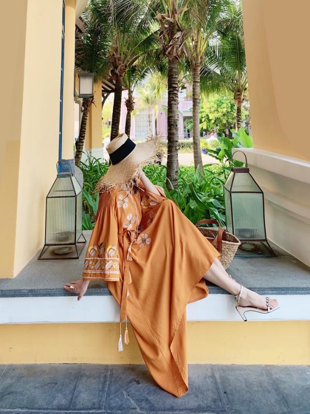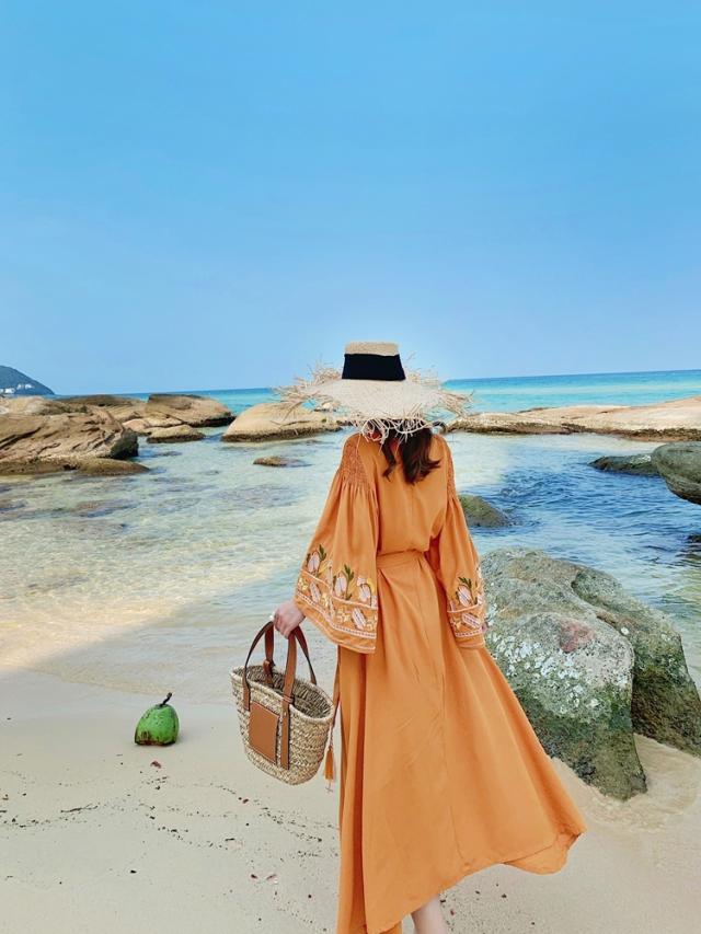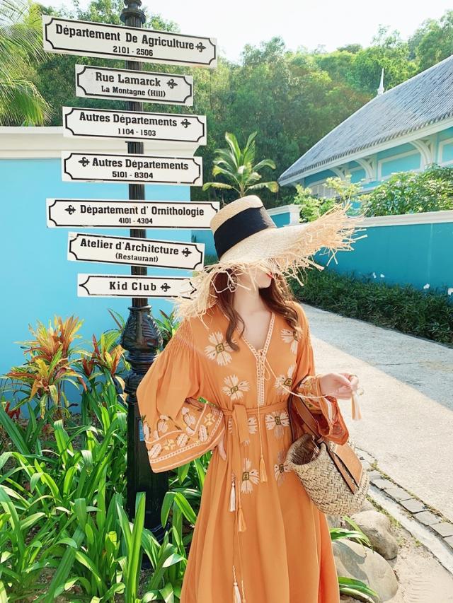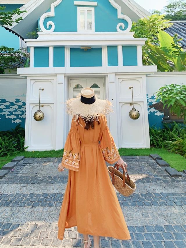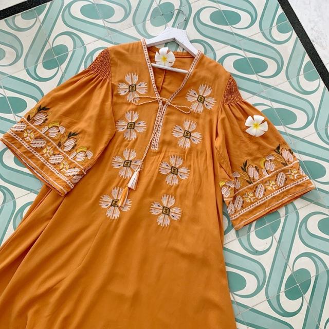 華やかなオレンジ色が目を引くワンピースです。