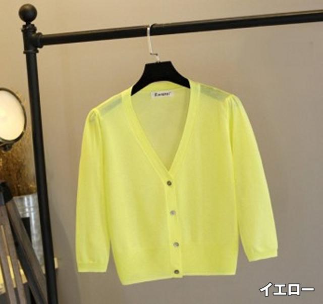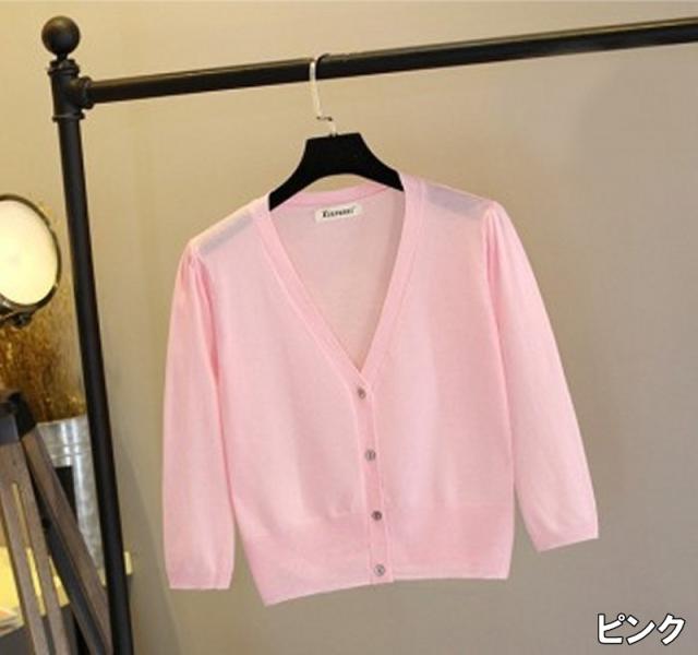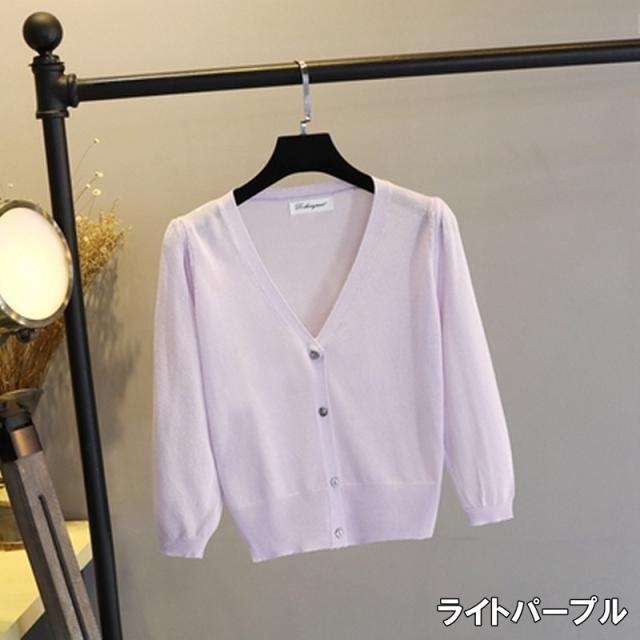 カーディガン レディース トップス 薄手 M L XL 2XL ホワイト 白 ピンク ブラック 黒 イエロー 黄色 ライトブルー 水色 アプリコット ライトパープル 紫 無地 パステルカラー シャーベットカラー フロントボタン 前開き 春 夏 7分袖 七分袖 ショート丈 ミディ丈 ママ