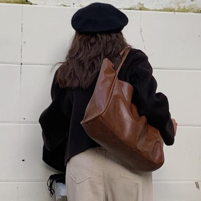 くたっとしたフェイクレザーがスタイリッシュな雰囲気を演出