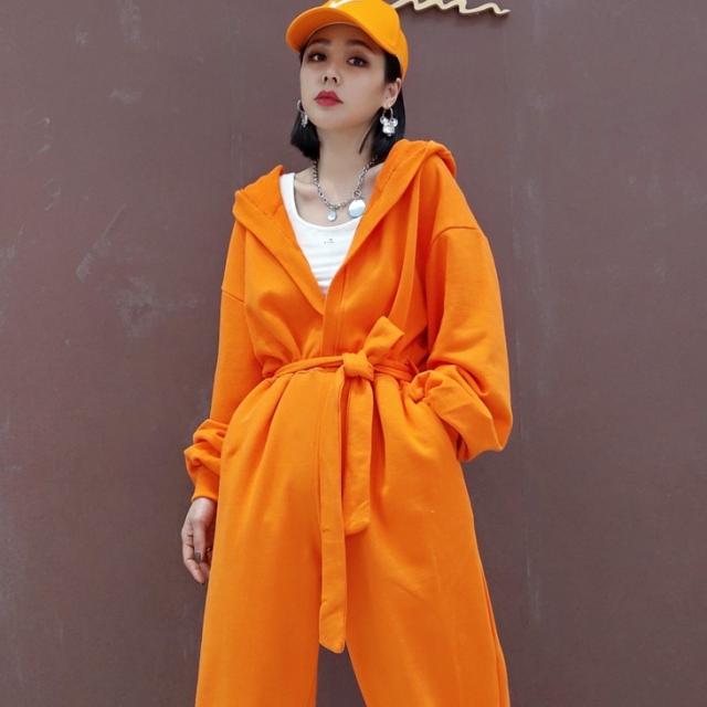 オーバーオール ジャンプスーツ 2色 フード付き ゆったり レディース 長袖 ポケット こなれ感 レトロ アンティーク ヴィンテージシンプル カジュアル ラフ お洒落 オシャレ かわいい 大人可愛い 20代 30代 40代 体型カバー 着痩せ 細見え 春 秋 冬 パンツ 個性派 個性的 ロング丈 ベルト ウエストリボン かっこいい クール ボーイッシュ メンズライク ストリート 無地 オレンジ 黒 ブラック 大きめ オーバーサイズ S М L スウェット 楽ちん 映え SNS 部屋着 ルームウェア パンツ