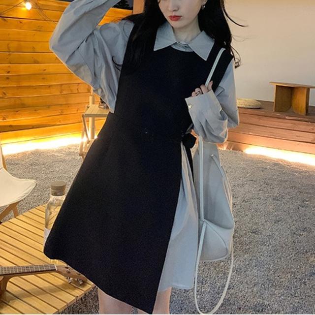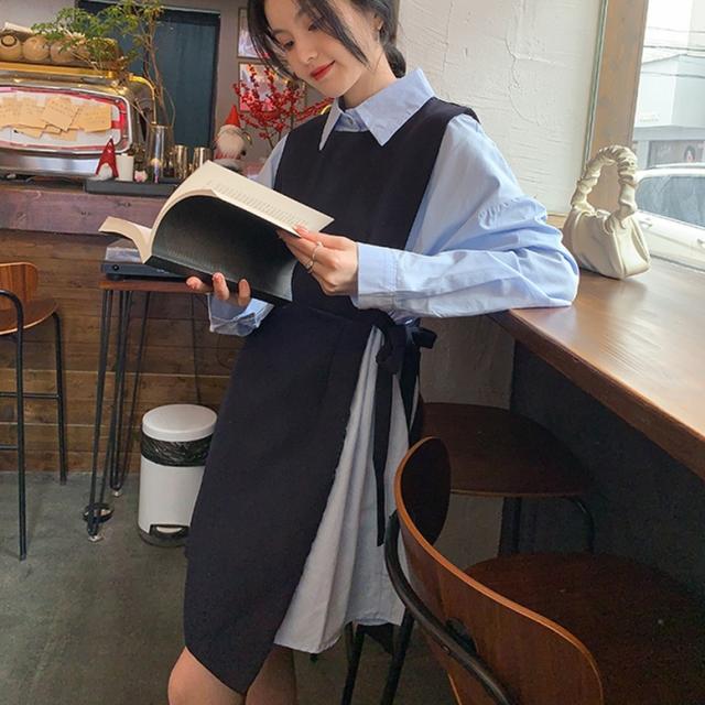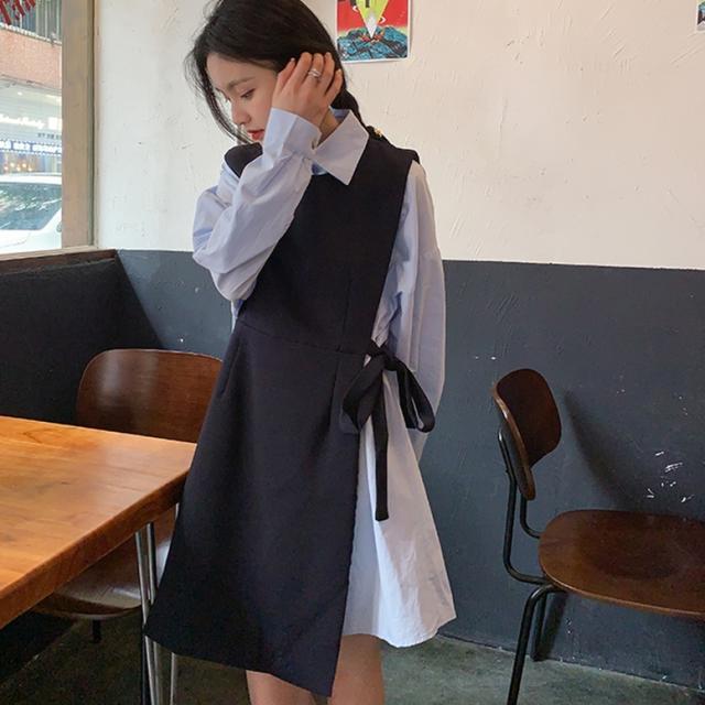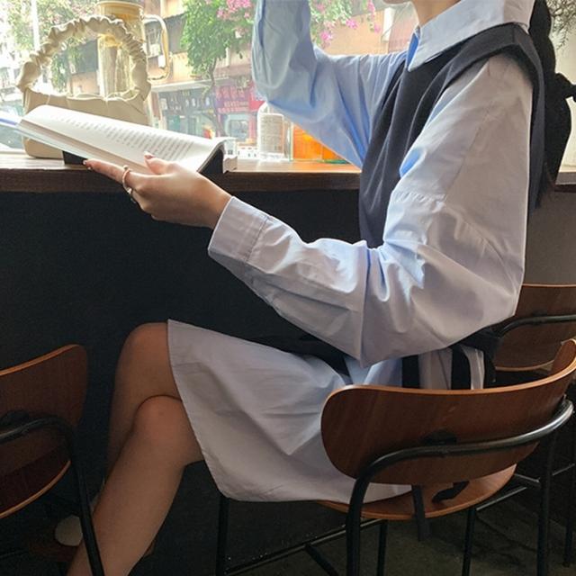セットアップ シャツワンピースセットアップ レディース 2点セット ツーピース シャツワンピース ロングベスト 襟付き 長袖 ショート丈 ウエストリボン 重ね着 レイヤード 青 灰色 ブルー グレー 大人可愛い きれいめ 上品 エレガント フォーマル ガーリー マニッシュ キュート おしゃれ 春 夏 秋 冬 二次会 オフィス OL 通勤 学生 通学 デート お出かけ パーティー イベント 女子会 休日 体型カバー 普段使い 定番 トレンド ゆったり インスタ映え シンプル カジュアル ニュアンスカラー