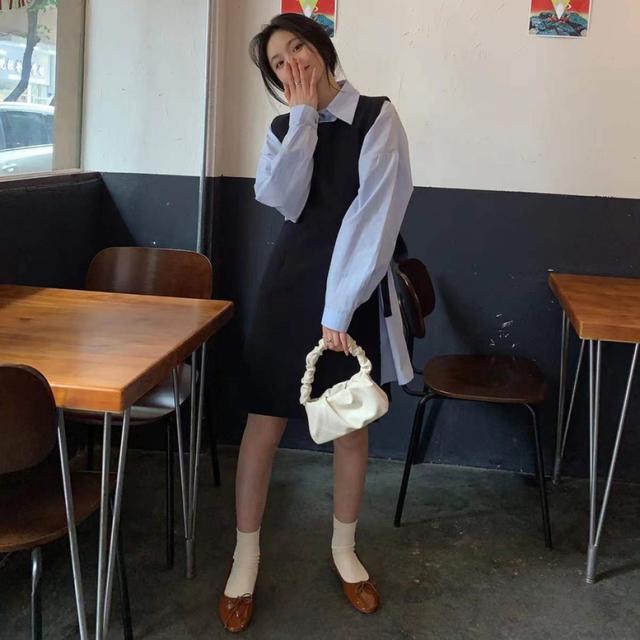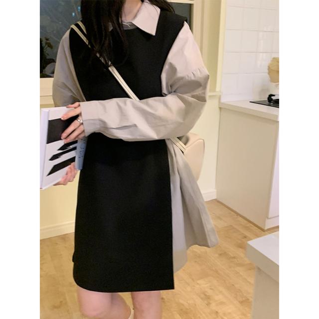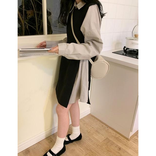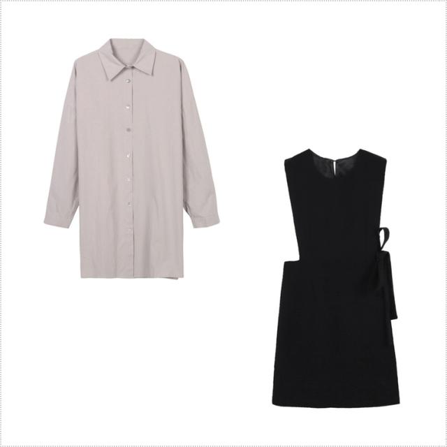 シャツワンピースとロングベストのセットアイテム