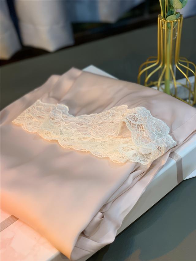 ピンクのサテン地にレースが可愛いデザイン♪