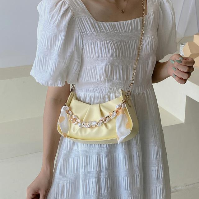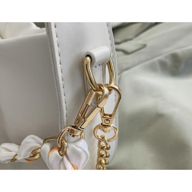 バッグ チェーンショルダーバッグ レディース レザーバッグ ハンドバッグ スカーフ付き 小型バッグ 斜め掛けバッグ 斜めがけ 肩掛けバッグ 肩かけ フェイクレザー 白 黄色 黒 ホワイト イエロー ブラック スクエア型 大人可愛い きれいめ 上品 エレガント フォーマル ガーリー おしゃれ オフィス OL 通勤 学生 通学 デート お出かけ パーティー イベント 女子会 休日 オールシーズン 春 夏 秋 冬 二次会 デイリー 普段使い トレンド インスタ映え くすみカラー アースカラー ニュアンスカラー