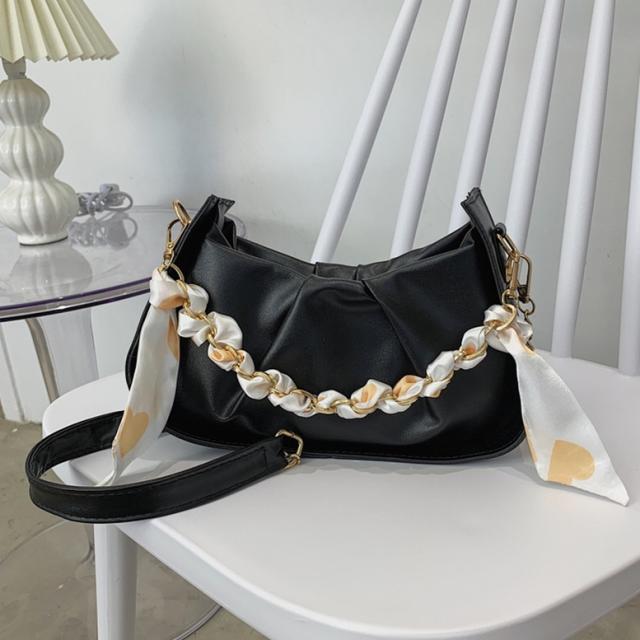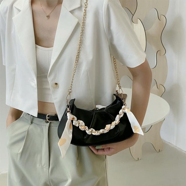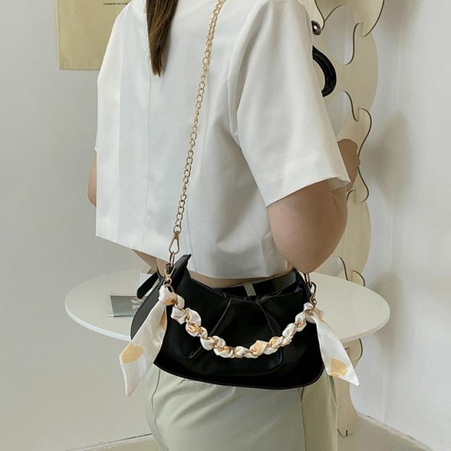 バッグ チェーンショルダーバッグ レディース レザーバッグ ハンドバッグ スカーフ付き 小型バッグ 斜め掛けバッグ 斜めがけ 肩掛けバッグ 肩かけ フェイクレザー 白 黄色 黒 ホワイト イエロー ブラック スクエア型 大人可愛い きれいめ 上品 エレガント フォーマル ガーリー