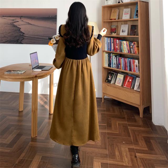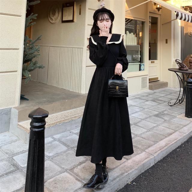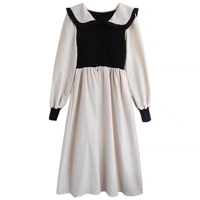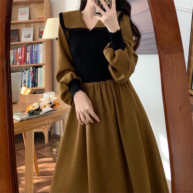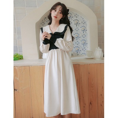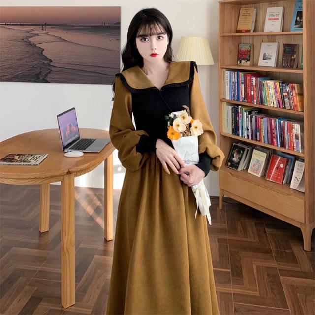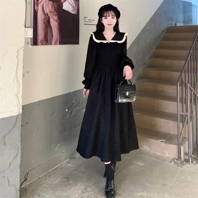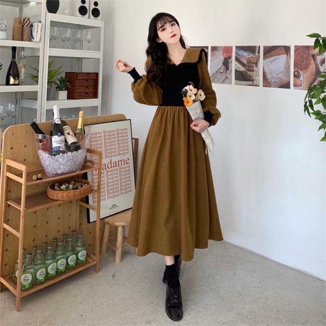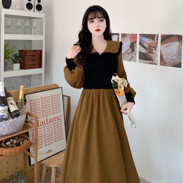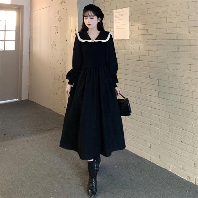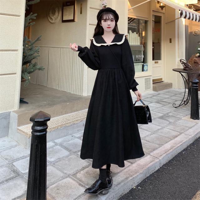 ワンピース 切り替え 3色 プラスサイズ セーラー襟 ロング丈 ミモレ丈 長袖 バイカラー レディース フリル リボン ビッグカラー 春 秋 冬 Aライン Vネック ふんわり ガーリー フェミニン シンプル カジュアル ゆったり 体型カバー 細見え 着痩せ オシャレ お洒落 かわいい 大人可愛い 10代 20代 30代 40代 茶色 ブラウン 黒 ブラック ベージュ 華奢 韓国 トレンド 流行 映え SNS 女子会 モテ デート 量産 姫系 スタイルアップ М L XL 2XL 3XL 4XL 大きめ