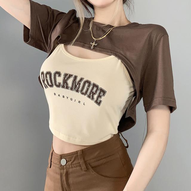 セットアップ 上下セット キャミソール Tシャツ デニム ショートパンツ レディース ショート丈 タイト スリム 細身 セクシー 肌見せ シンプル カジュアル 春 夏 秋 冬 かわいい 大人可愛い オシャレ お洒落 デート モテ 女子会 こなれ感 S М L XL 韓国 トレンド 流行 学生 くすみカラー ブラウン 茶色 脚長 美脚 スタイルアップ アメカジ ストリート ロゴ 新作 2022 伸縮性 2点セット 薄手 ミニスカート カットソー ラップスカート 映え SNS アシンメトリー 着回し