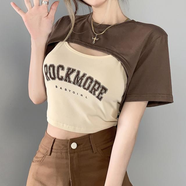 ショート丈Tシャツとキャミソール、ショートパンツの上下セットです。