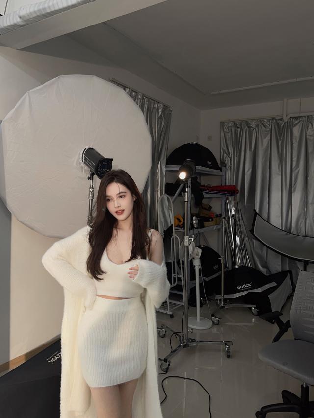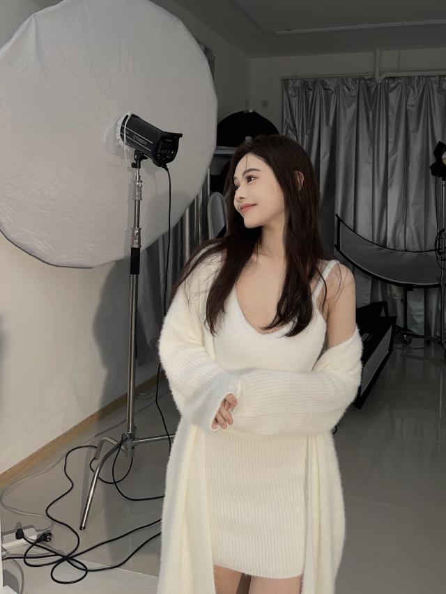 ニット素材のキャミソールとミニスカートのセットアップです。