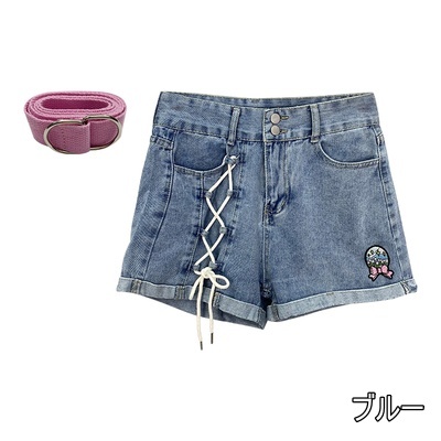 ボトムス ショートパンツ デニム ベルト付き 編み上げ Aライン タイト スリム 細身 レディース ミニ丈 ショート丈 膝上 かわいい 大人可愛い 春 夏 秋 冬 オールシーズン ブルー 青 無地 10代 20代 30代 お洒落 オシャレ ハイウエスト 脚長 美脚 スタイルアップ S М L XL カジュアル シンプル 韓国 トレンド 流行 量産型 地雷 映え SNS 女子会 デート 映え 普段使い 普段着 お出かけ ギャル スタイルアップ セクシー 色落ち 加工 ブリーチ ピンク 刺繍 2点セット お得