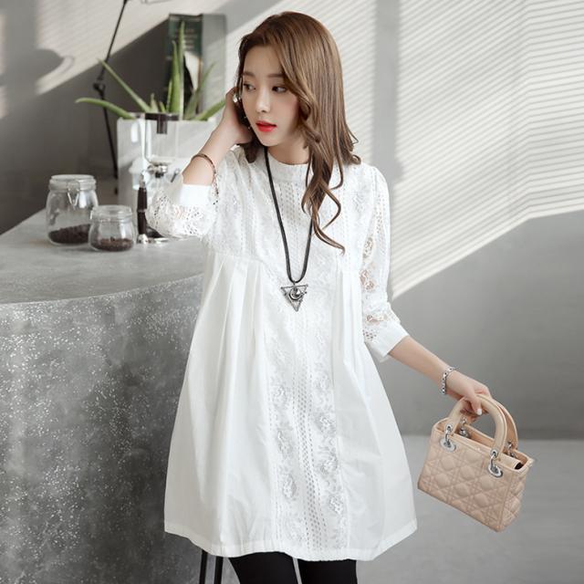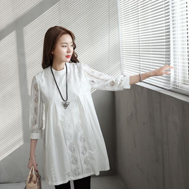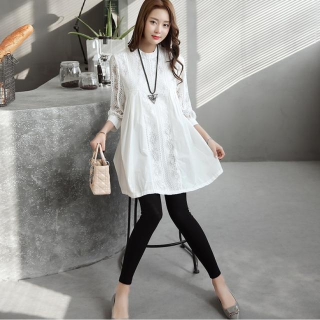 レースを施したチュニックにレギンスタイツが可愛い印象