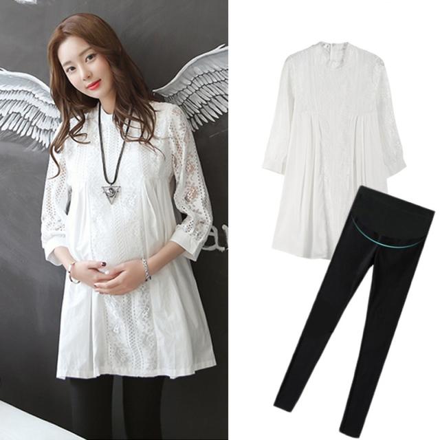 セットアップ チュニック+レギンスセット レディース 2点セット 上下セット ツーピース ルームウェア チュニック レース シャツ トップス レギンス スパッツ フレア 7分袖 白 ホワイト 黒 灰色 ライトグレー ダークグレー 大人可愛い きれいめ 上品 エレガント ガーリー