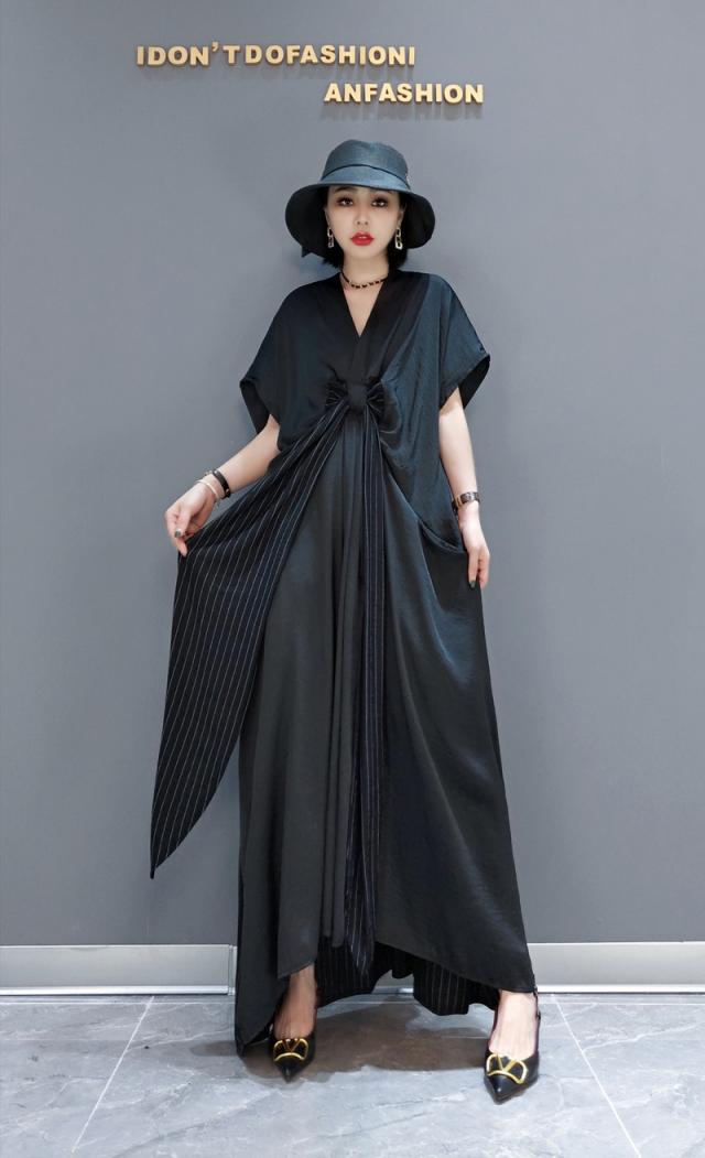 ワンピース ロングワンピース ワンピドレス フレアワンピース 半袖 フレンチスリーブ Vネック Aライン 切り替えデザイン ドッキング ウエストマーク ウエストリボン バックシャン 大人可愛い きれいめ 大人 上品 おしゃれ お洒落 かっこいい 大人女子 こなれ感 エレガント クール モード系 個性的 主役級 存在感 とろみ感 抜け感 ワンサイズ フリーサイズ 黒 ブラック ストライプ柄 茶色 ブラウン アニマル柄 20代 30代 40代 50代 デート お出かけ 女子会 お呼ばれ パーティー