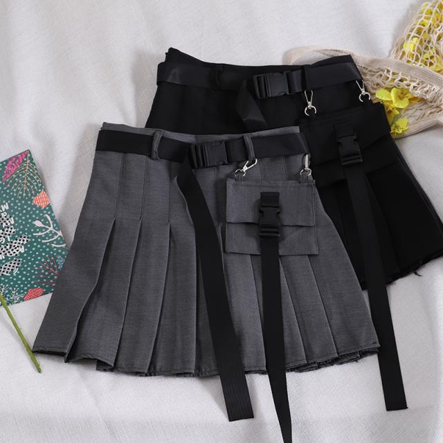 ミニスカート プリーツ 2色 Aライン ベルト デザイン レディース ショート丈 膝上 かわいい 大人可愛い きれいめ 春 夏 秋 冬 オールシーズン 黒 ブラック グレー 灰色 無地 10代 20代 30代 お洒落 オシャレ ハイウエスト 脚長 美脚 スタイルアップ S М L XL カジュアル シンプル 韓国 トレンド 流行 女子会 モテ デート 映え SNS 普段使い 普段着 お出かけ シック モダン タック スタイルアップ セクシー 量産 地雷 サブカル パンク ロック ポケット かっこいい