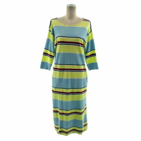 【中古】ロデオクラウンズワイドボウル RCWB ワンピース 七分袖 ロング コットン ボーダー 青系 黄色 エンジ 紺 白 M