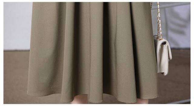 Aラインのフレアシルエットとウエストマークでスタイルアップ効果も◎