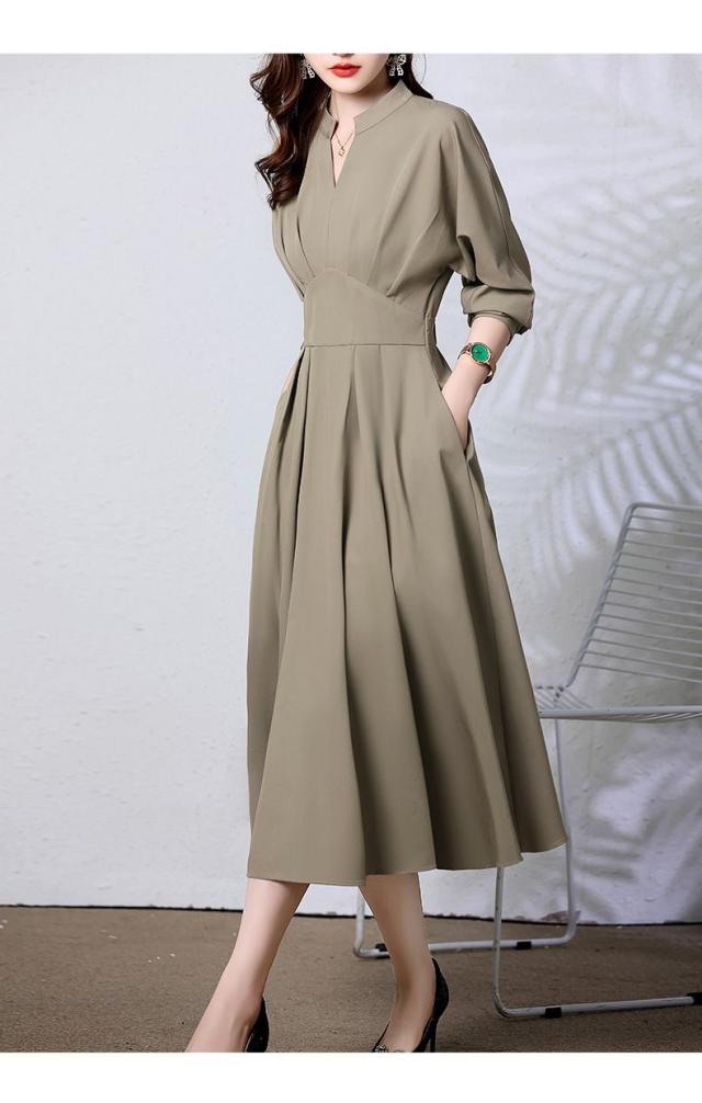 ワンピース レディース ロングワンピース ママスーツ スワンネック 長袖 Aライン フレア タック ウエストマーク 大人可愛い きれいめ 上品 おしゃれ お洒落 かっこいい レトロ 大人女子 フェミニン エレガント 清楚 存在感 抜け感 こなれ感 高見え M L XL 2XL 3XL ブラウン 茶色 カーキ 緑 ネイビー 紺 無地 春 夏 秋 10代 20代 30代 40代 50代 60代 フォーマル 入学式 入園式 卒業式 卒園式 結婚式 二次会 披露宴 お出かけ デート 女子会 旅行