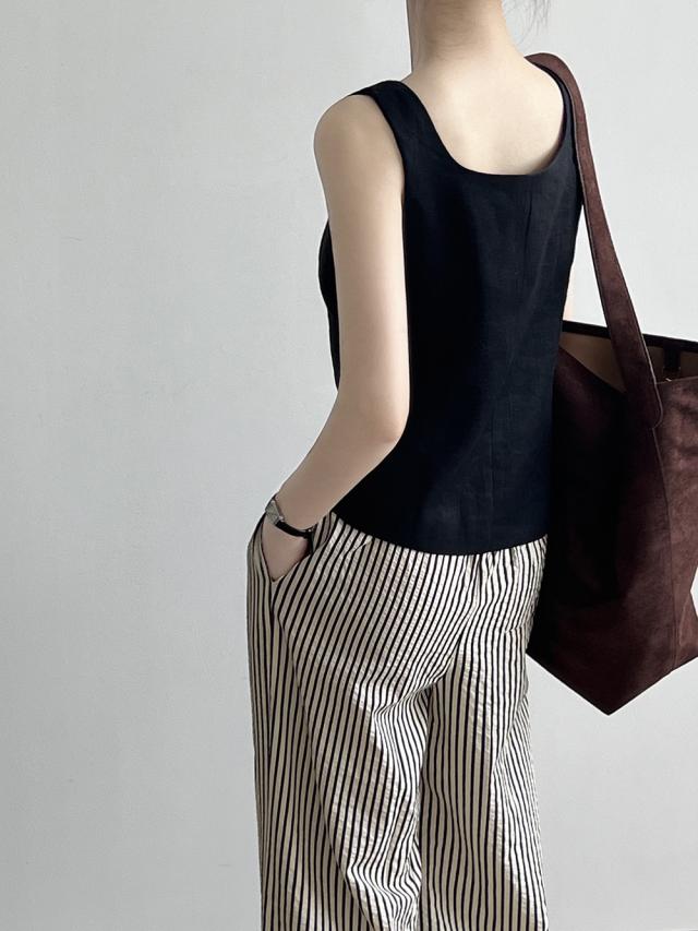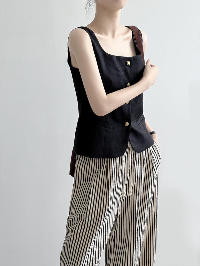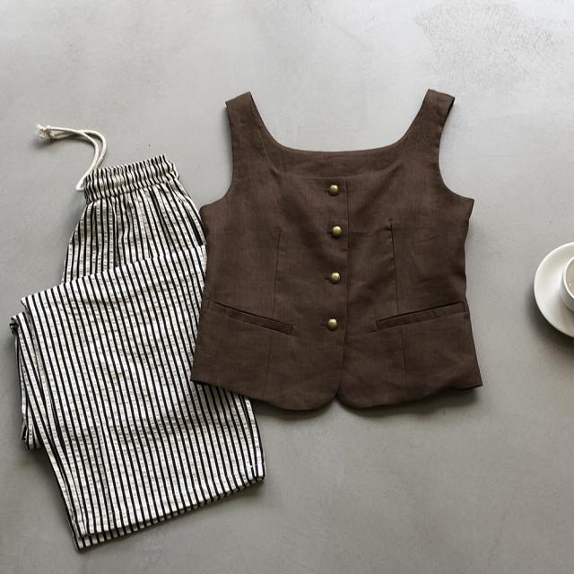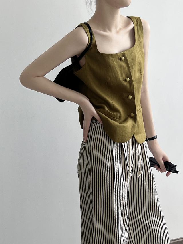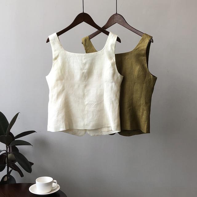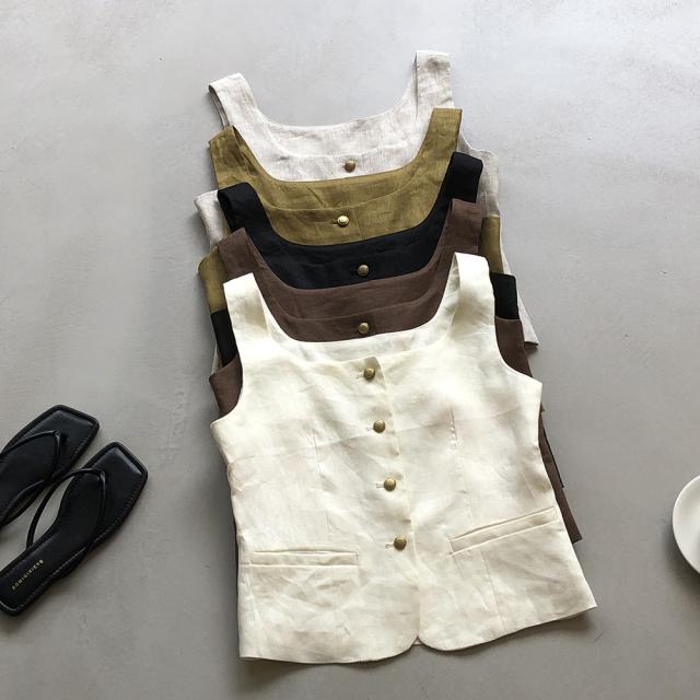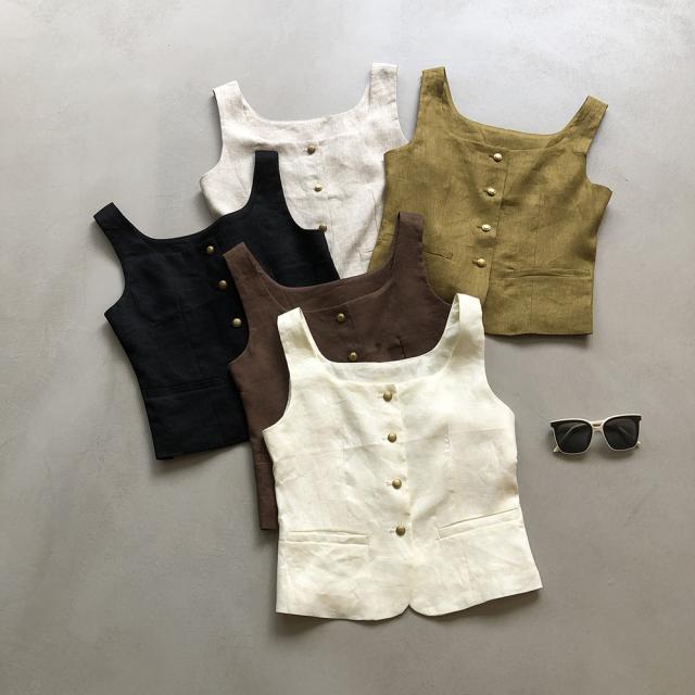 5色カラバリ、Uネックリネンジレベスト。