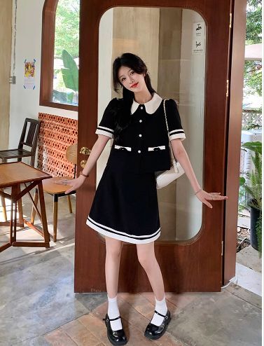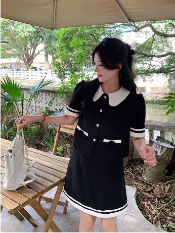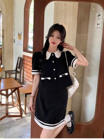 セットアップ レディース 2点セット 上下セット スーツ 半袖ジャケット 襟付き ボタン ポケット パフスリーブ 台形ミニスカート ショート丈 大人可愛い きれいめ 上品 おしゃれ お洒落 キュート ガーリー ラブリー フェミニン エレガント レトロ 存在感 抜け感 こなれ感 M L XL 2XL 3XL 4XL 大きいサイズ 春 夏 秋 黒 ブラック モノトーン バイカラー 10代 20代 30代 40代 50代 デート お出かけ 女子会 休日 イベント モテ 制服風 コスプレ 旅行 韓国 オルチャン