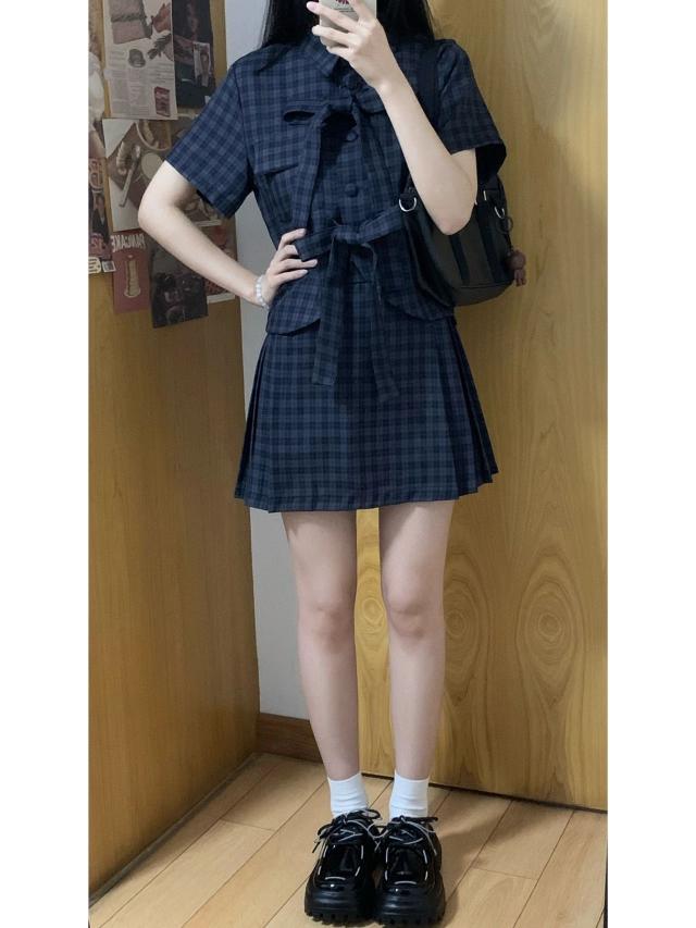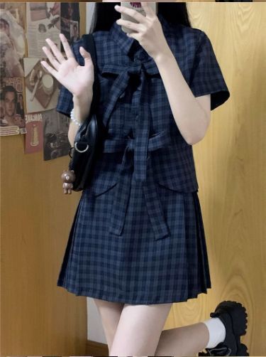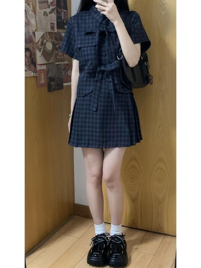 セットアップ レディース 2点セット 上下セット半袖シャツジャケット 襟付き ボタン ポケット リボン ミニスカート ショート丈 セミフレア プリーツ かわいい きれいめ 上品 おしゃれ お洒落 キュート ガーリー ラブリー レトロ 存在感 抜け感 こなれ感 S M L XL 2XL 大きいサイズ 春 夏 秋 黒 ブラック チェック柄 制服風 スーツ JK風 女子高生 10代 20代 30代 40代 50代 デート お出かけ 女子会 休日 イベント モテ コスプレ 旅行 韓国 オルチャン