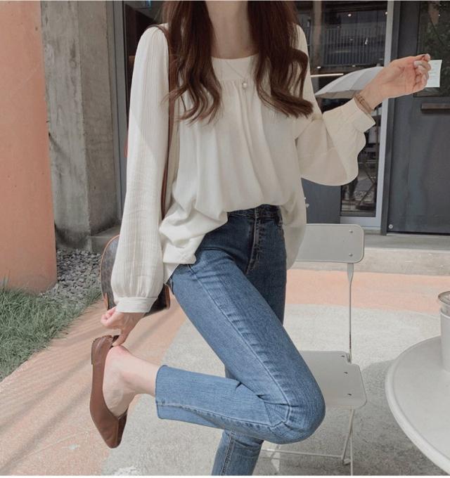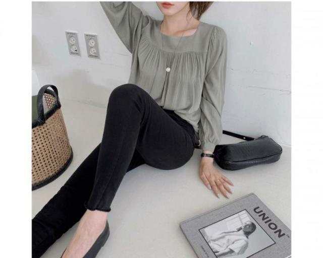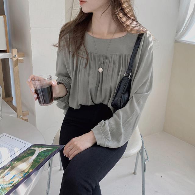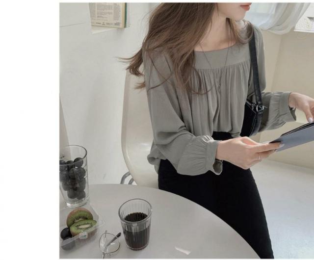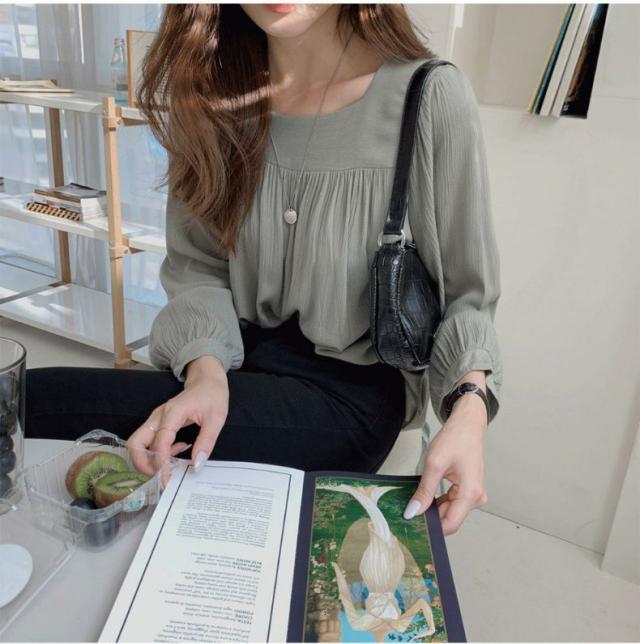 トップス レディース シャツ ブラウス シフォンブラウス 長袖 スクエアネック プルオーバー シャーリング ギャザー 大人可愛い シンプル カジュアル 大人 上品 おしゃれ お洒落 大人女子 エレガント フェミニン 存在感 抜け感 こなれ感 S M L XL 白 アイボリー グレー 灰色 無地 春 夏 秋 10代 20代 30代 40代 50代 60代 体型カバー 二の腕カバー 学生 通学 お出かけ 休日 旅行 イベント 普段使い デイリー 着回し 韓国 オルチャン ゆったり ルーズ 楽ちん