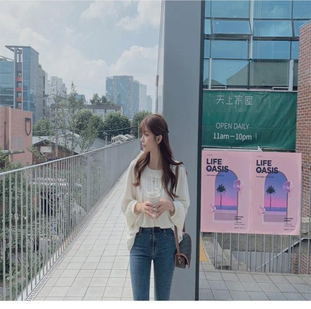 2色カラバリ、シャーリングシフォンブラウス。