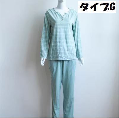 8色カラバリ、薄手長袖長ズボンセットアップルームウェア。