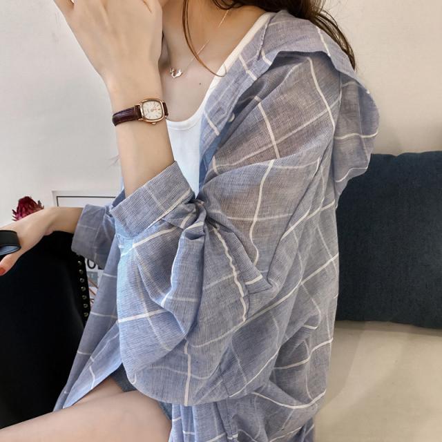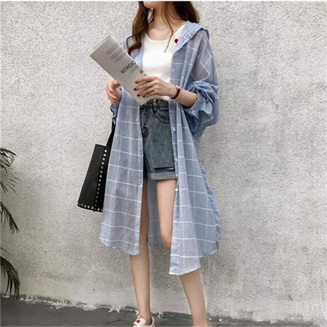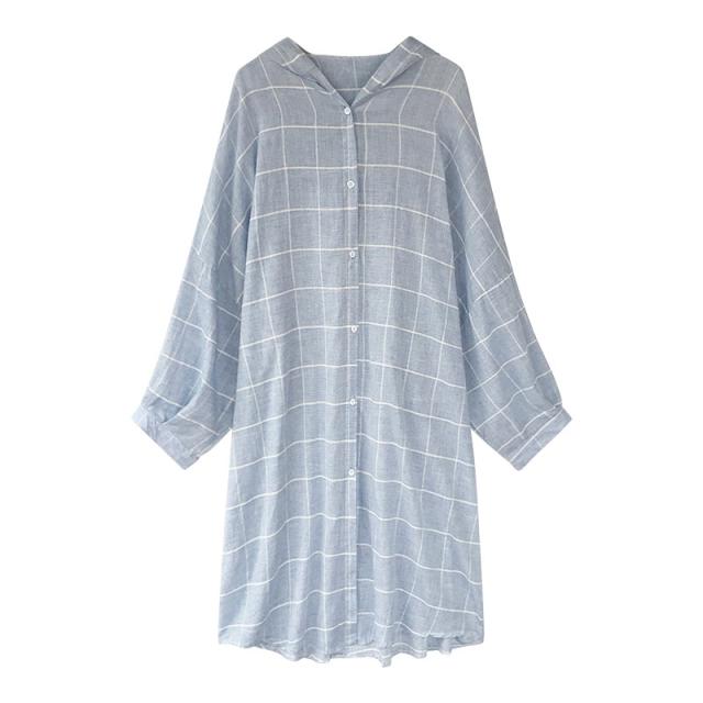 トップス レディース ロングカーディガン ロングシャツ ガウン 羽織り 長袖 前開き ボタン フーディ パーカー フード付き ゆったり 大人可愛い シンプル きれいめ カジュアル おしゃれ お洒落 大人女子 こなれ感 ラフ ルーズ 存在感 抜け感 M L XL 2XL 3XL 4XL 青 ブルー 水色 チェック柄 日焼け止め ラッシュガード 冷房避け 冷房対策 日焼け対策 春 夏 秋 10代 20代 30代 40代 50代 60代 学生 通学 お出かけ 公園デビュー 休日 旅行 普段使い デイリー