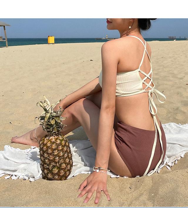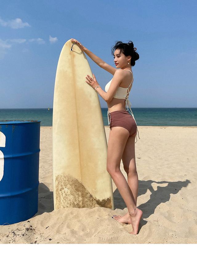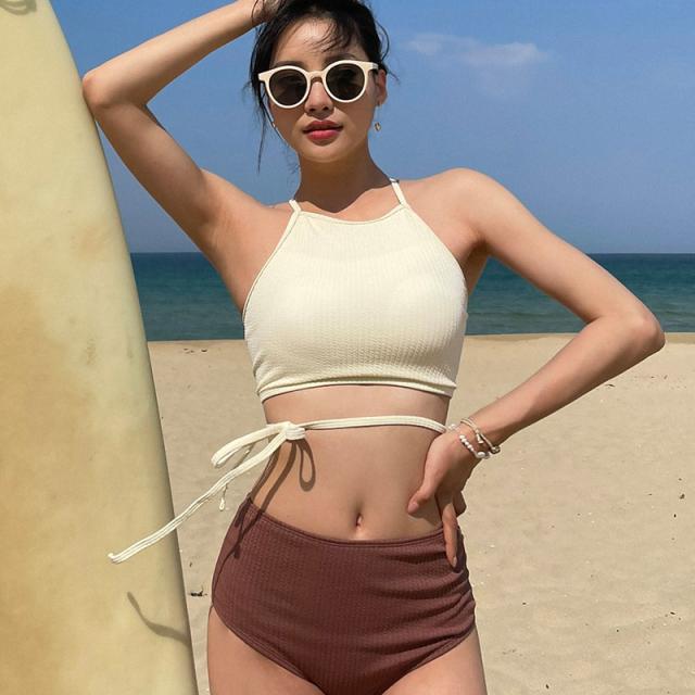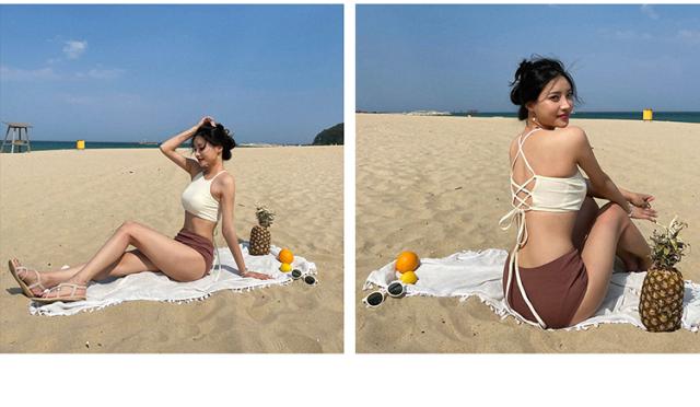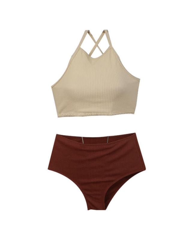 水着 スイムウエア レディース ビキニ タンキニ セパレート ホルターネック 2点セット 上下セット 2way バッククロス 大人可愛い きれいめ セクシー sexy シンプル ナチュラル おしゃれ お洒落 レトロ 大人 大人っぽい 主役級 存在感 女っぽ クール かっこいい M L XL 白 アイボリー 茶色 ブラウン バイカラー 無地 10代 20代 30代 40代 ビーチ 海 夏 プール リゾート 旅行 着痩せ 美脚 脚長 スタイルアップ 美スタイル モテ 韓国 オルチャン 高見え プレゼント
