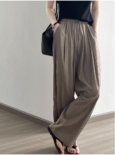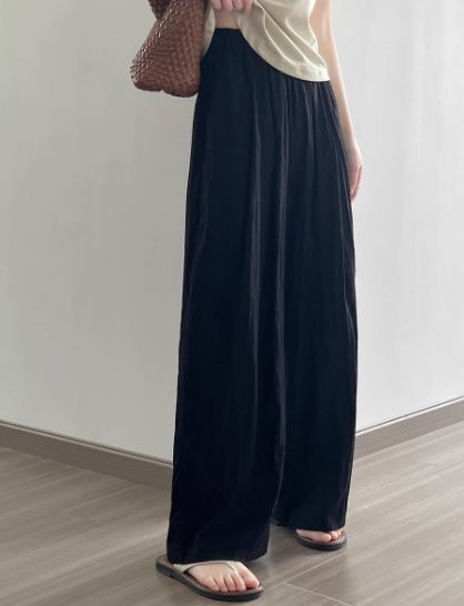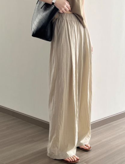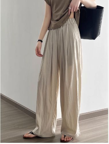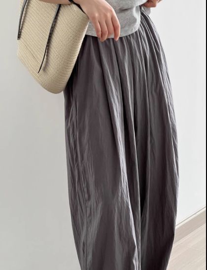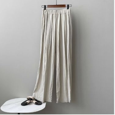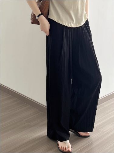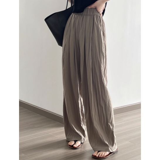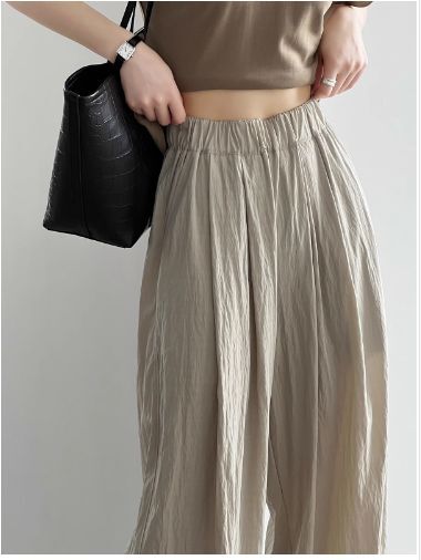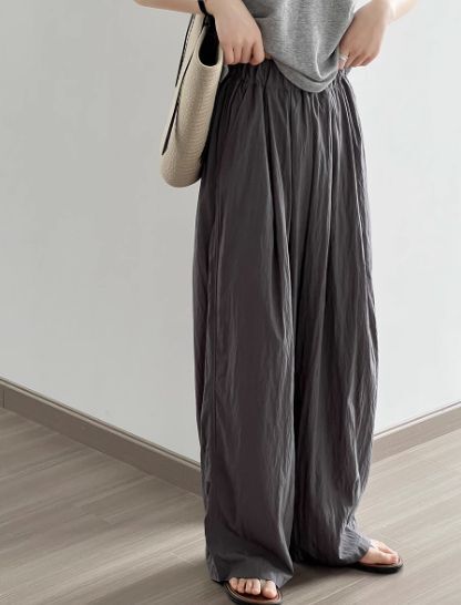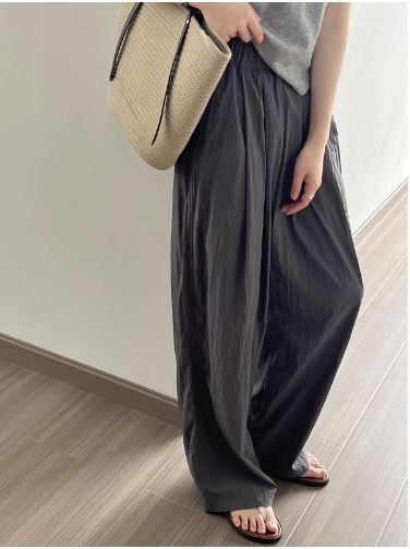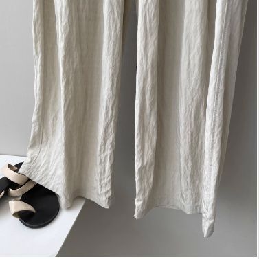 4色カラバリ、シワ加工さらさらワイドパンツ。