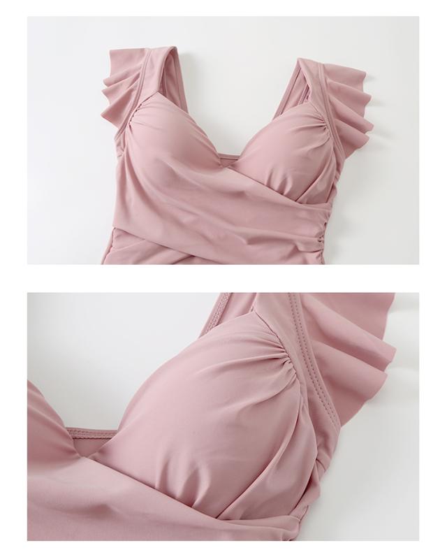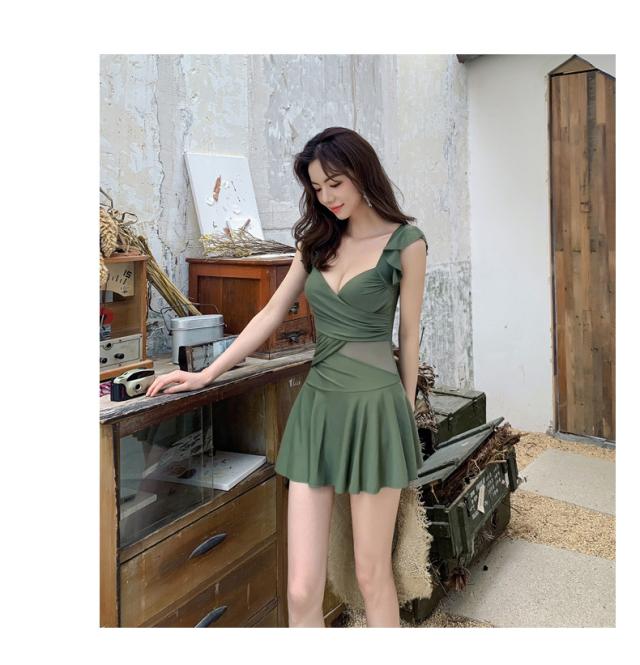 水着 スイムウエア レディース ワンピース カシュクール フリル 半袖 スカート 胸元 谷間魅せ 盛れる 大人可愛い きれいめ セクシー sexy おしゃれ お洒落 シンプル ナチュラル 大人 大人っぽい 華やか レトロ 主役級 存在感 女っぽ M L XL 2XL 黒 ブラック 緑 グリーン ピンク 無地 10代 20代 30代 40代 50代 ビーチ 海 夏 プール リゾート 旅行 体型カバー 二の腕カバー 着痩せ 美脚 脚長 スタイルアップ 美スタイル モテ 韓国 オルチャン 高見え プレゼント