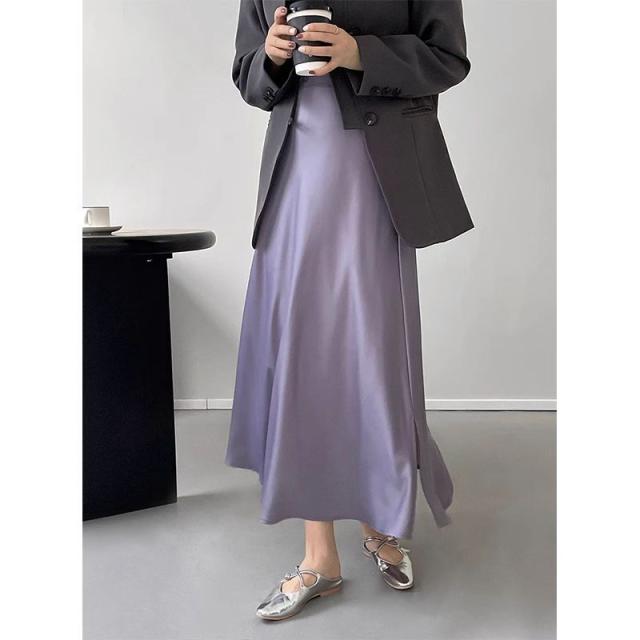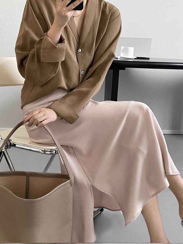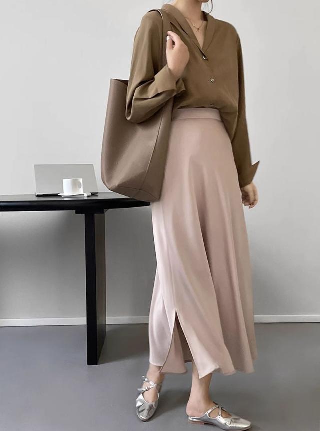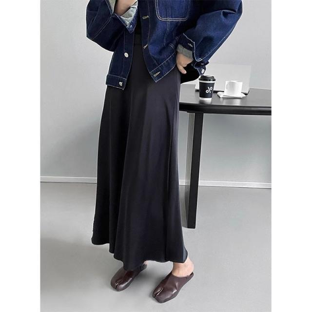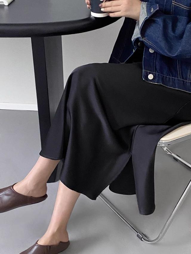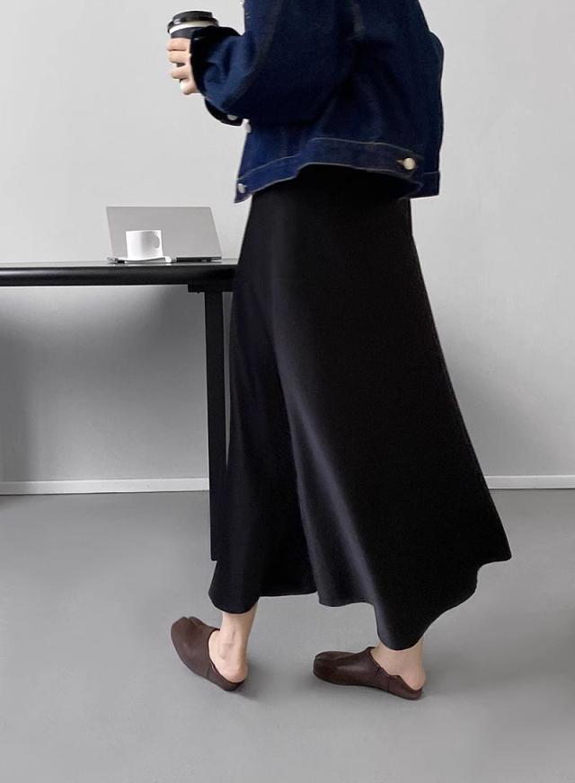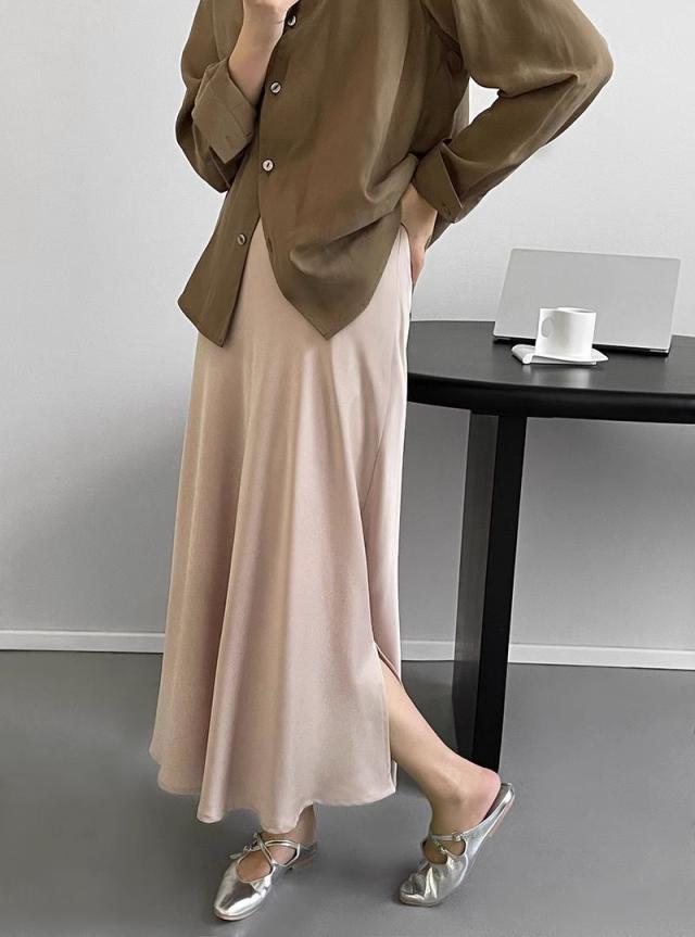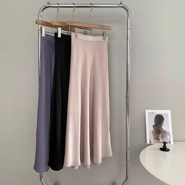 3色カラバリ、サテンロングマーメイドスカート。