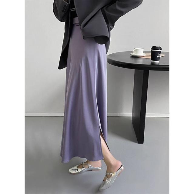 ボトムス レディース マーメイドスカート フレアスカート ロング丈 Aライン サイドスリット サテン 光沢 大人可愛い シンプル きれいめ 大人 上品 おしゃれ お洒落 かっこいい 大人女子 フェミニン エレガント シック こなれ感 とろみ感 存在感 M L パープル 紫 ラベンダー ベージュ ブラック 黒 無地 春 夏 秋 10代 20代 30代 40代 50代 60代 デート お出かけ 女子会 休日 旅行 美脚 脚長 モテ 韓国 オルチャン 普段使い デイリー 着回し