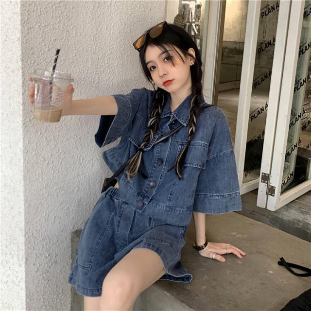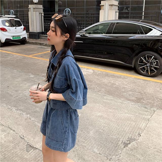 セットアップ レディース デニムシャツジャケット デニムショートパンツ 半袖 5分袖 五分袖 襟付き 上下セット 大人可愛い シンプル カジュアル 大人 おしゃれ お洒落 かっこいい こなれ感 ラフ ルーズ メンズライック ボーイッシュ クール 存在感 抜け感 S M L XL 2XL 無地 ブルーデニム 春 夏 秋 10代 20代 30代 40代 ママ 学生 通学 お出かけ 公園デビュー お泊り 女子会 アウトドア イベント 旅行 海 プール 美脚 脚長 モテ 普段使い デイリー 韓国