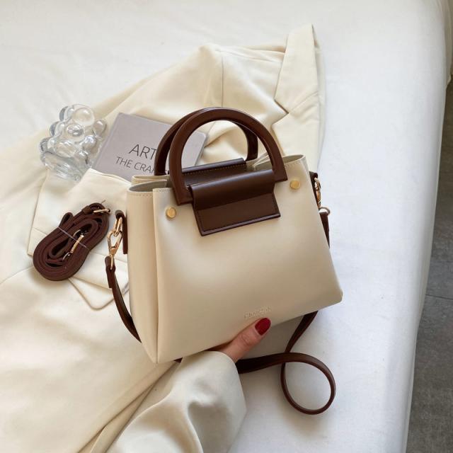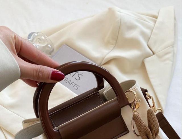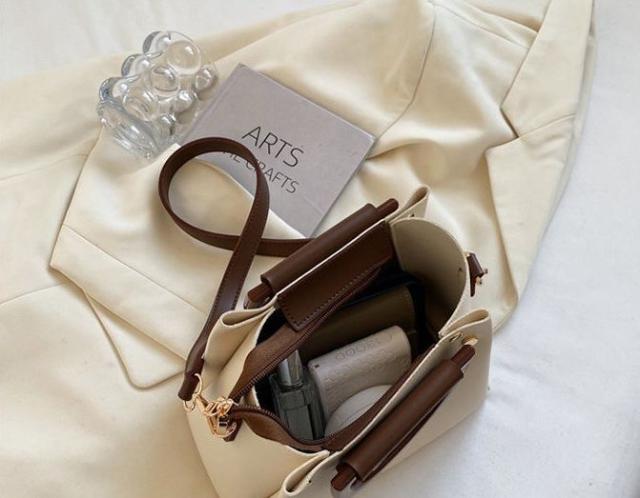 3色カラバリ、合皮バイカラースクエアショルダーバッグ。