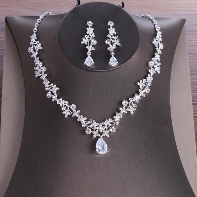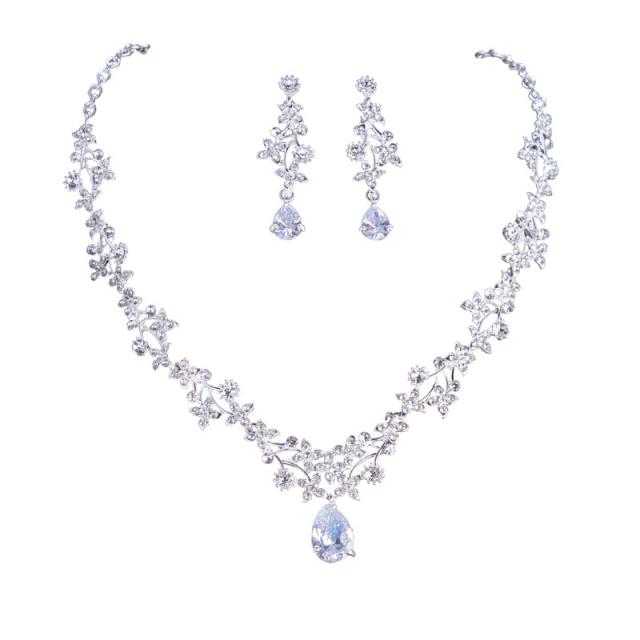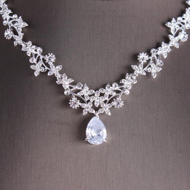 ネックレス ピアス イヤリング レディース 2点セット ウエディング 結婚式 ジルコニア ビジュー シルバー 銀色 ブライダル クリスタル 演奏会 マタニティフォト 謝恩会 撮影会 発表会 ファッションショー パーティー ダンス 前撮り 披露宴 二次会 2次会 誕生日 ラグジュアリー