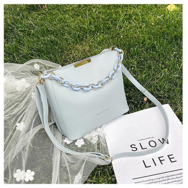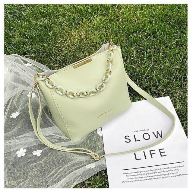 バッグ バック カバン かばん 鞄 bag レディース ショルダーバッグ ハンドバッグ 手提げ 手さげ 手持ち 斜め掛け 斜めがけ 肩がけ 肩がけ チェーン 2way 長方形 スクエア型 四角 PU 合皮 フェイクレザー ミニサイズ 小さめ かわいい 大人可愛い きれいめ シンプル 上品 おしゃれ お洒落 大人女子 存在感 抜け感 水色 ブルー 黒 ブラック アイボリー 白 グリーン 緑 オールシーズン 無地 10代 20代 30代 40代 50代 60代 お出かけ 旅行 デイリー 普段使い